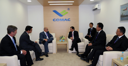 中國(guó)經(jīng)濟(jì)網(wǎng)訊 2012年7月9日,在第四十八屆范堡羅航展期間,中國(guó)商飛公司總經(jīng)理賀東風(fēng)與各航空企業(yè)界人士就深化溝通合作、促進(jìn)雙方共同發(fā)展等問題進(jìn)行了深入交流。公司獨(dú)立董事李豐華、總會(huì)計(jì)師田民出席相關(guān)會(huì)見活動(dòng)。