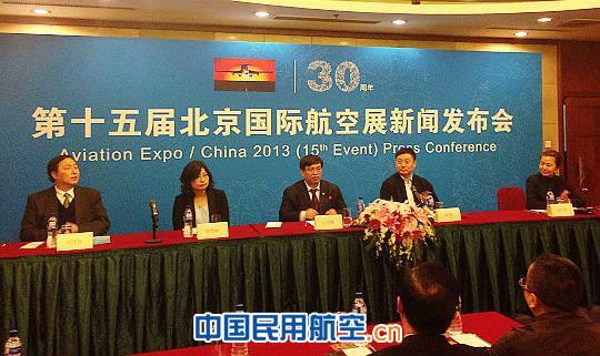 3月27日,第十五屆北京國際航空展新聞發(fā)布會(huì)在京召開,中航工業(yè)集團(tuán)辦公廳副主任付明耀、中國商飛公司市場(chǎng)營銷部陸崢、香港華進(jìn)公司總裁祁理權(quán)等人出席了發(fā)布會(huì)。付明耀介紹了中航工業(yè)取得的新發(fā)展,以及中航工業(yè)在此次北京航展中的參展情況。