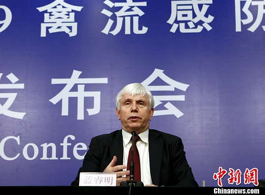 圖為世界衛(wèi)生組織駐華代表藍睿明在新聞發(fā)布會上!z影:李慧思