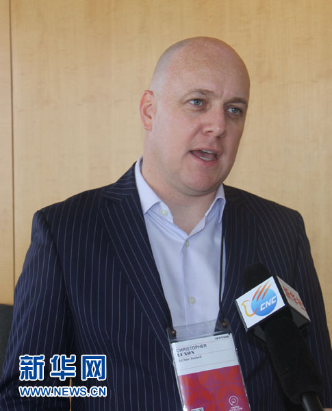 圖為新西蘭航空全球首席執(zhí)行官陸杰鋒 (Air New Zealand CEO Christopher Luxon)23日在奧克蘭接受新華網(wǎng)記者專訪。