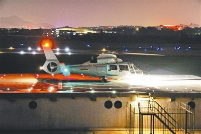 中國某艦載機(jī)部隊(duì)直升機(jī)模擬夜間海上著艦