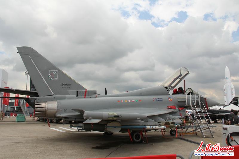 第50屆法國巴黎航展17日-23日在巴黎郊區(qū)的布爾歇機場開幕,眾多國際知名的新型軍民用飛機匯聚巴黎。圖為歐洲“臺風”戰(zhàn)斗機靜態(tài)展示。(李志偉 攝影)