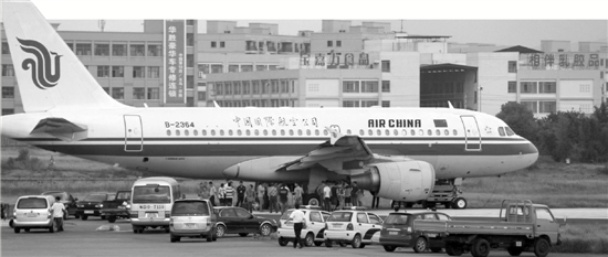 “當時來了很多工作人員,廣播說,因為飛機輪胎陷進跑道,為了減輕飛機的重量,要求所有乘客下飛機。”下機后,王小姐看了看,發(fā)現(xiàn)飛機的一只輪胎陷進了瀝青路面,輪胎并沒有爆裂。