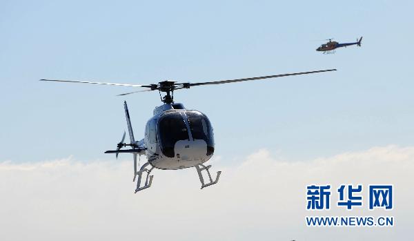 資料圖片:11月8日,AC311直升機(前)和AC301直升機在飛行中。