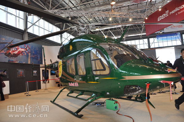 貝爾直升機公司展臺的直升機 中國經濟網記者 段丹峰 攝