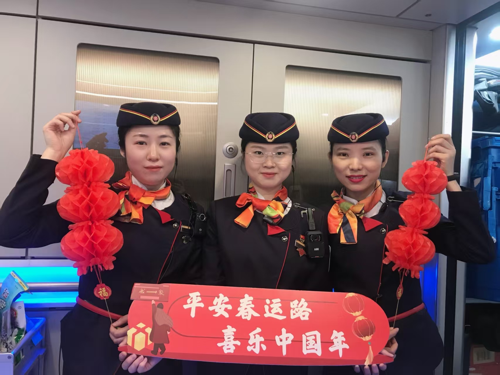 2月10日,G6002次列車上開(kāi)展“高鐵迎新春,幸福中國(guó)年”特色活動(dòng)。(國(guó)鐵廣州局供圖)