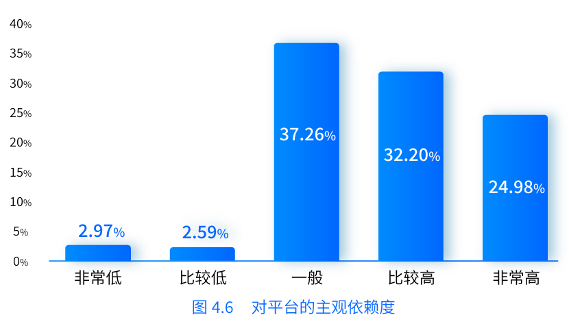 “我們?cè)谡{(diào)研中發(fā)現(xiàn),貨車司機(jī)對(duì)使用數(shù)字貨運(yùn)平臺(tái)的主觀依賴度還是很高的?!敝袊?guó)人民大學(xué)中國(guó)就業(yè)與民生研究院執(zhí)行副院長(zhǎng)周廣肅說。報(bào)告中指出,主觀認(rèn)為自己對(duì)平臺(tái)的依賴程度較高和非常高的司機(jī)占全體調(diào)查司機(jī)的57.18 %,超過了總數(shù)的一半。