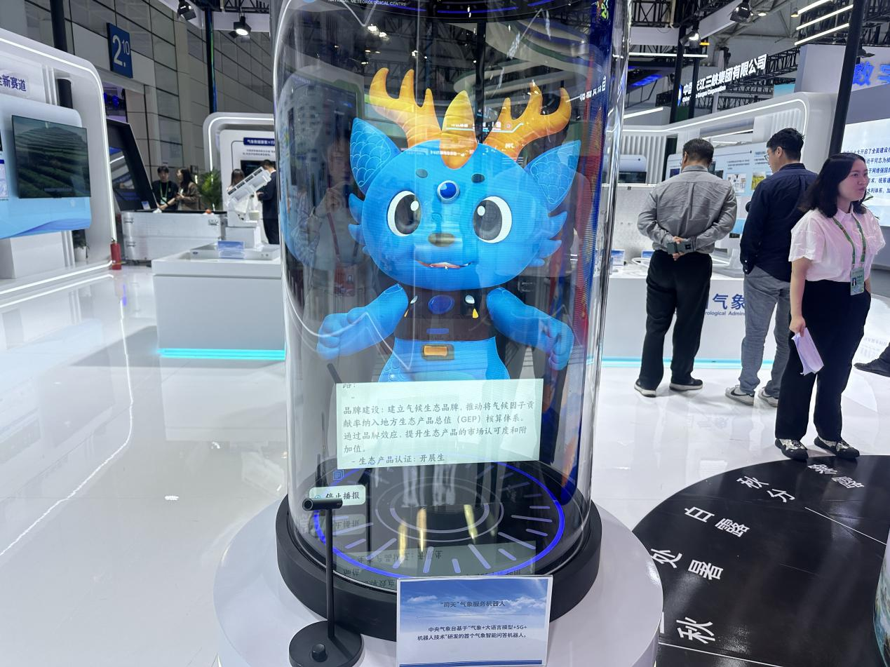 “司天”氣象服務(wù)機(jī)器人是中央氣象臺基于“氣象+大語言模型+5G+機(jī)器人技術(shù)”研發(fā)的首個氣象智能問答機(jī)器人。 中國經(jīng)濟(jì)網(wǎng)記者 梁木攝