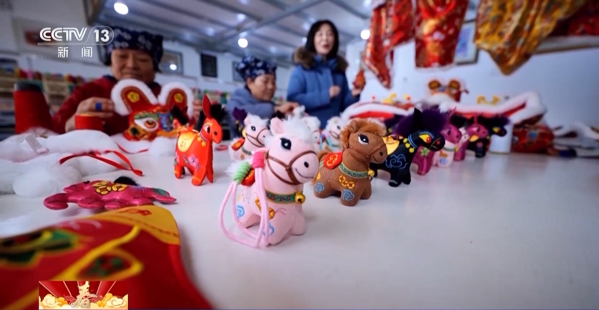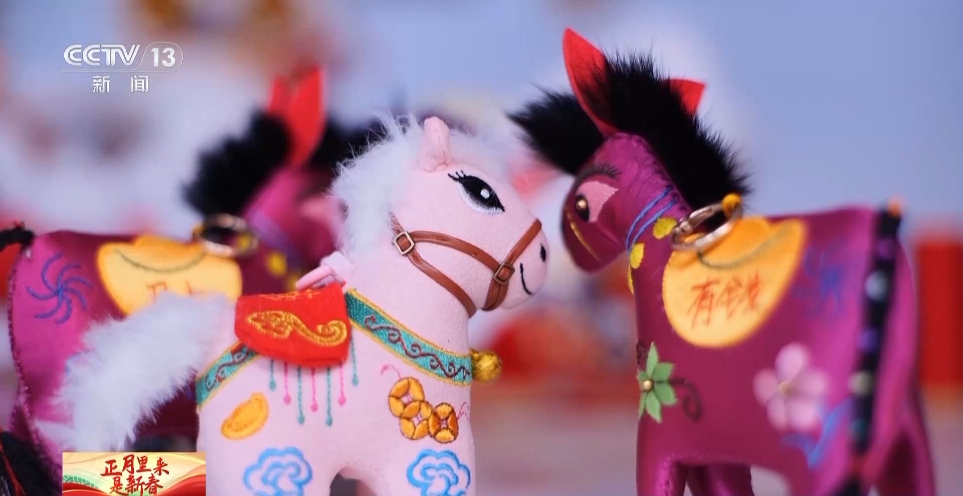 今年受歡迎的不只是馬社火的袍服,就連巡游的駿馬都被做成非常可愛的掛飾,成為爆款。小馬掛飾身上的刺繡花紋和袍服上的繡法同出一脈,都是源自傳承千年的國家級非遺——西秦刺繡。這是一門源于生活、代代相傳的老手藝。