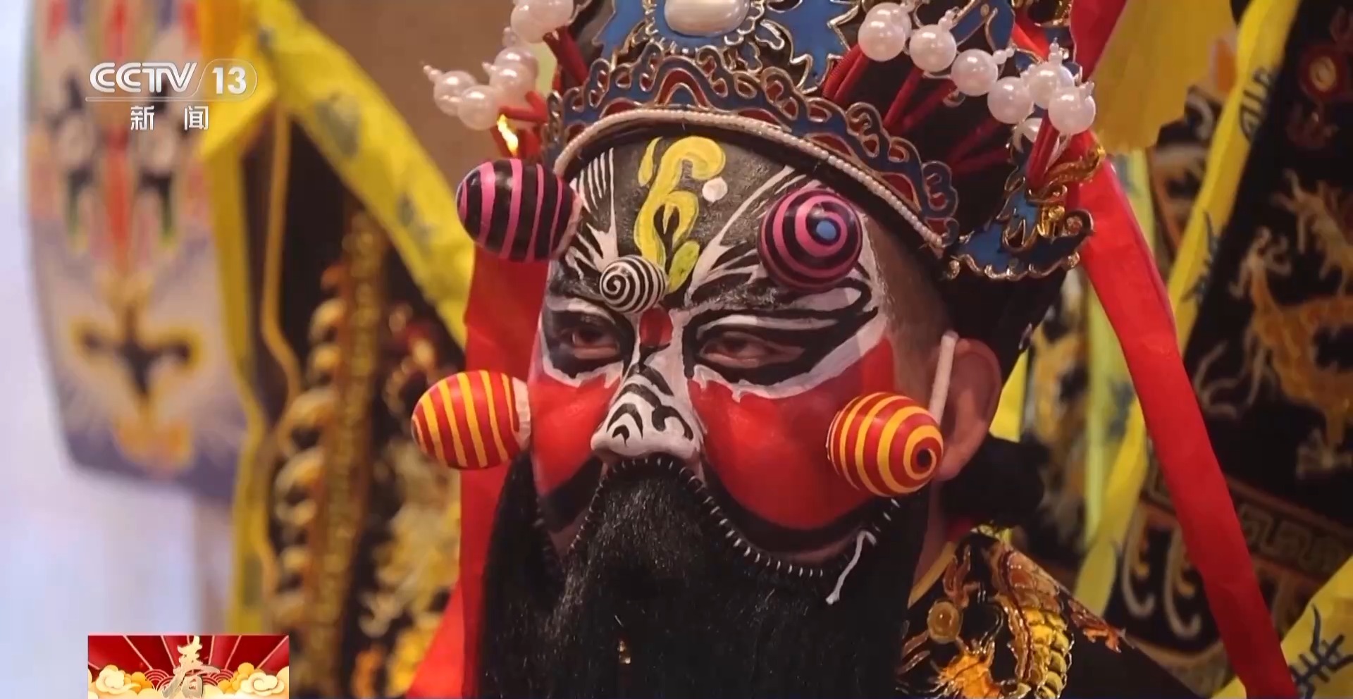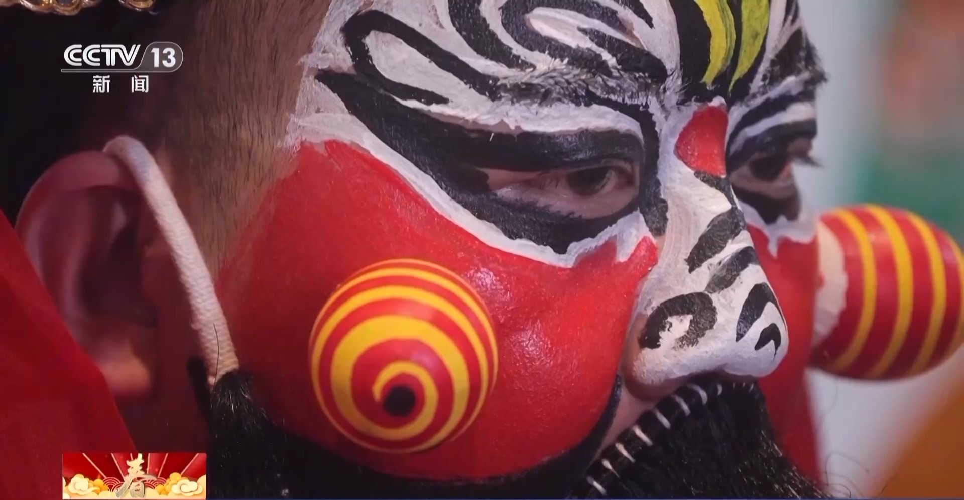 總臺央視記者 何莉:這個角色就是社火當(dāng)中的黑虎趙公明,人們認為他可以除瘟消災(zāi)、帶來財運。他臉上凸起,看起來非常立體,而這些凸起就是用普通的雞蛋殼制作而成。