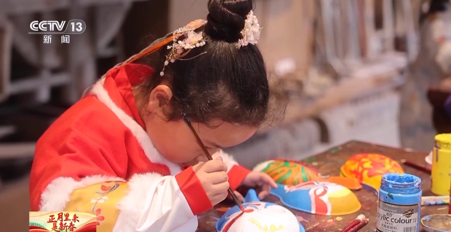 陜西省寶雞市隴縣非遺文化研習(xí)班學(xué)生 張藝瀟:我最喜歡馬社火,因為非常威武,我今天還畫了社火臉譜。