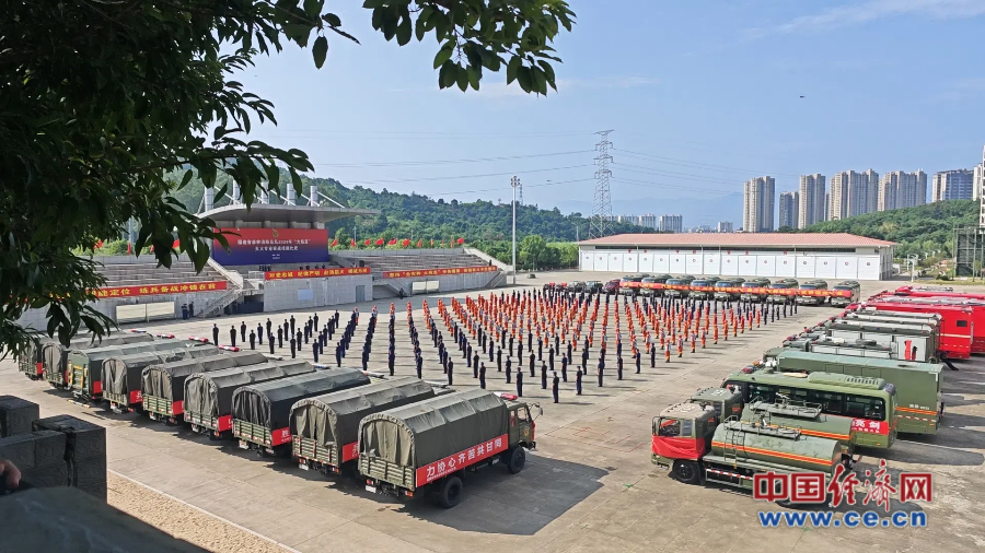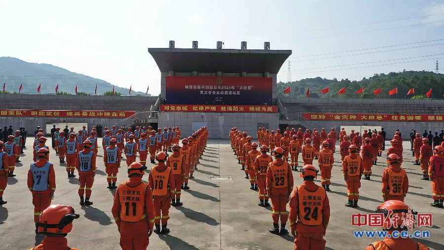 福建省森林消防總隊2024年“火焰藍”滅火專業(yè)實戰(zhàn)技能比武開幕式現(xiàn)場。 蔡增欣/攝