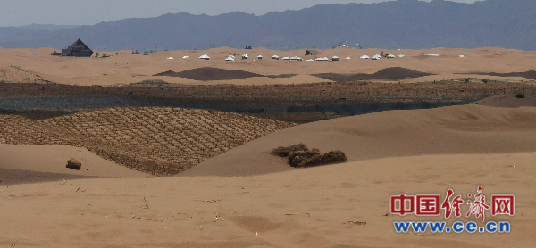 點沙成金,綠富同興。唐希明還積極引導(dǎo)當(dāng)?shù)厝朔N植沙蔥和經(jīng)濟(jì)林。“沙漠是陸地生態(tài)系統(tǒng)的重要組成部分,在防沙治沙的基礎(chǔ)上,我們更要學(xué)會利用沙漠資源,大力發(fā)展沙漠旅游、沙漠牧場、光伏發(fā)電等產(chǎn)業(yè),形成人沙和諧、沙為人用的良好局面?!痹谔葡C骺磥恚蛏衬б娴那疤?,首先是要通過鎖邊治理使得周圍形成一道綠色的屏障,從而擋住風(fēng)沙。有了好的生態(tài)環(huán)境,才會有更多產(chǎn)業(yè)發(fā)展的可能。沙坡頭區(qū)旅游產(chǎn)業(yè)的快速發(fā)展就是中衛(wèi)治沙成績的有力見證。