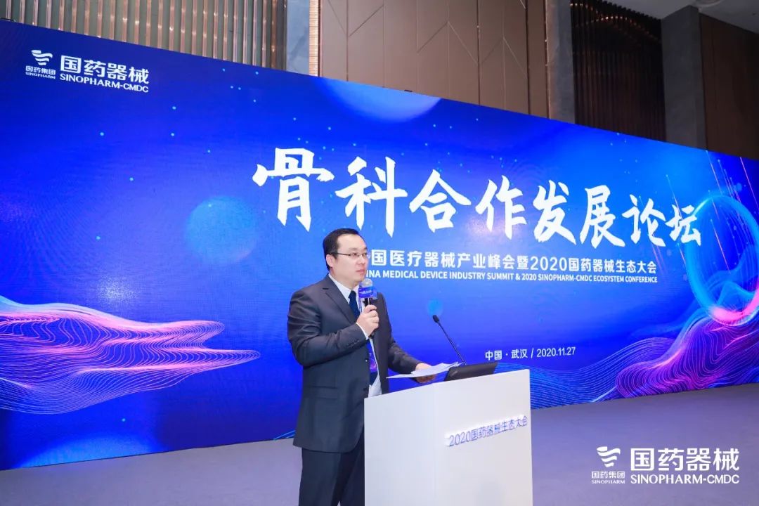 骨科合作與發(fā)展論壇由國藥器械西區(qū)事業(yè)部主辦,國藥器械副總經(jīng)理、西區(qū)事業(yè)部總經(jīng)理張威做《國藥器械全國骨科業(yè)務(wù)合作及發(fā)展戰(zhàn)略》主題演講,強(qiáng)調(diào)通過加大專業(yè)化營銷,深化精益化管理等手段積極與廣大合作伙伴相互賦能,共贏發(fā)展。