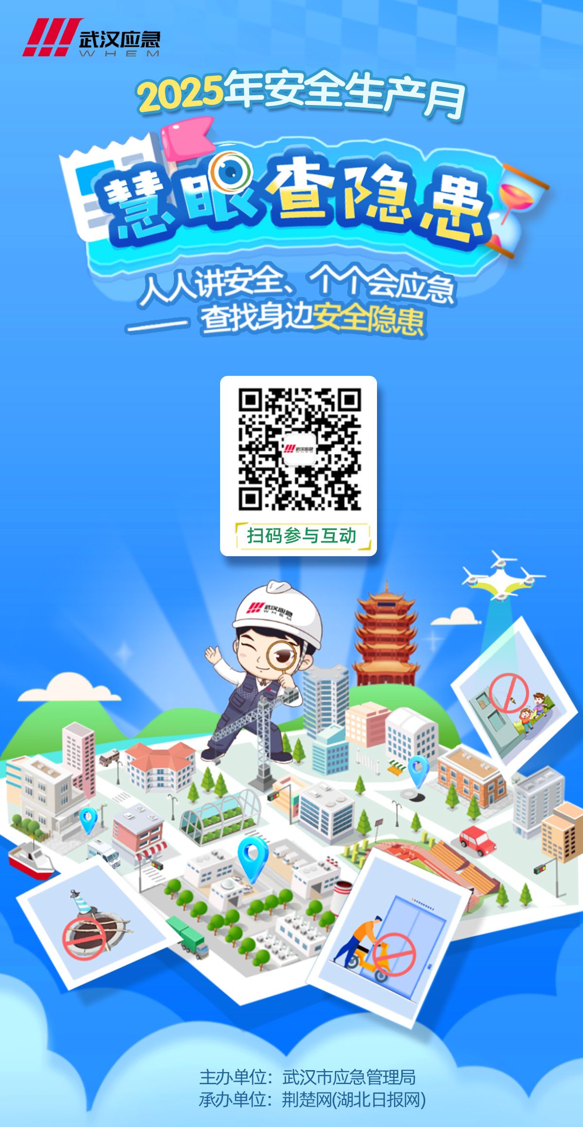 荊楚網(wǎng)(湖北日報網(wǎng))訊(記者薛培愷 通訊員晏慧)今年6月是第24個全國“安全生產(chǎn)月”,主題是“人人講安全、個個會應(yīng)急——查找身邊安全隱患”。由武漢市應(yīng)急管理局主辦,荊楚網(wǎng)(湖北日報網(wǎng))承辦的2025年安全生產(chǎn)月“慧眼查隱患”線上趣味互動游戲,將于6月15日正式上線。該游戲以知識性、趣味性、沉浸式的全新體驗,讓廣大群眾和網(wǎng)友學習安全知識更直觀、查找身邊安全隱患更“直接”。