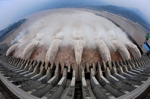 2008年8月13日,長(zhǎng)江入汛以來的最大一次洪水順利通過三峽工程向中下游推進(jìn),中下游水位持續(xù)上漲,三峽工程運(yùn)行正常。2009年汛期,三峽水庫的防洪庫容已達(dá)146億立方米,開始發(fā)揮攔洪調(diào)峰和枯水期給下游補(bǔ)水的功能,下游荊江河段防洪標(biāo)準(zhǔn)已從十年一遇提高到了近百年一遇,長(zhǎng)江中下游的防洪體系初步形成。新華社記者杜華舉攝