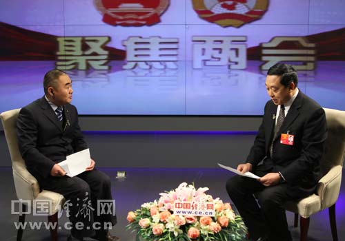 全國人大代表、江蘇洋河酒廠股份有限公司(蘇酒集團)黨委書記趙鳳琦(右)做客中國經(jīng)濟網(wǎng)(王耀峰攝影)