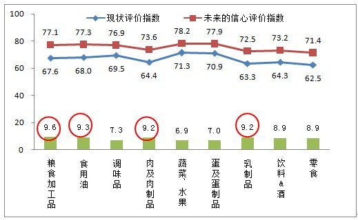 附圖 市民對九大食品未來信心評價指數(shù)與現(xiàn)狀指數(shù)