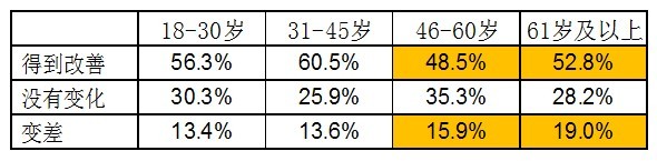 解讀一:過去一年,46-60歲的市民對食品安全狀況的改善評價較低