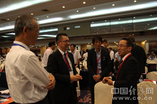 由中國道路交通安全協(xié)會、中國汽車技術(shù)研究中心和中國經(jīng)濟網(wǎng)共同主辦的“2013中國道路交通安全論壇”于8月29日在北京首都大酒店舉行。圖為日產(chǎn)汽車株式會社企劃·先行技術(shù)開發(fā)本部部長高橋信彥(右)與參會嘉賓進行交流。中國經(jīng)濟網(wǎng) 裴小閣 攝影