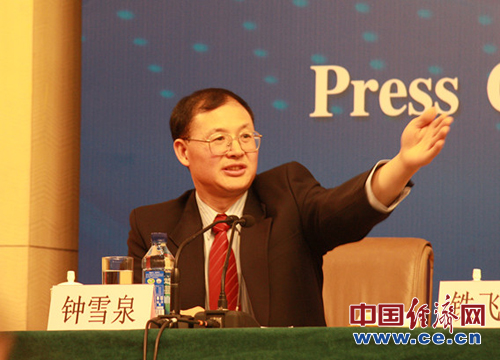 3月10日(星期日)15:00,在梅地亞中心多功能廳舉行“一線工人農(nóng)民代表談履職”為主題的記者會(huì),邀請(qǐng)六位代表就相關(guān)問(wèn)題回答中外記者提問(wèn)。圖為主持人鐘雪泉。中國(guó)經(jīng)濟(jì)網(wǎng)記者劉瀟瀟/攝
