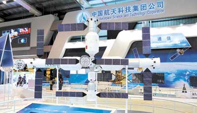 載人航天工程二期和三期任務(wù)。展廳中,最引人注目的莫過(guò)于天宮一號(hào)目標(biāo)飛行器1:1的模型及未來(lái)空間站模型。它們向觀眾形象地描摹了我國(guó)載人航天工程二期和三期的圖景。