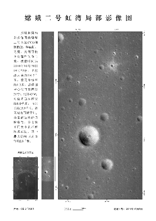 北京,2010年11月8日 國(guó)家國(guó)防科技工業(yè)局首次發(fā)布嫦娥二號(hào)月面虹灣局部影像圖 這是嫦娥二號(hào)虹灣局部影像圖(成像時(shí)間為10月28日)。