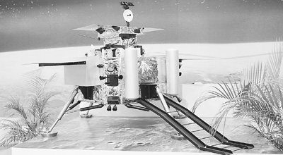 上部小車為月面巡視器模型,下為月面軟著陸探測器模型。我國探月工程二期將研制和發(fā)射月面軟著陸探測器和巡視器,開展月面探測活動,實現(xiàn)落月目標,也就是嫦娥三號任務。